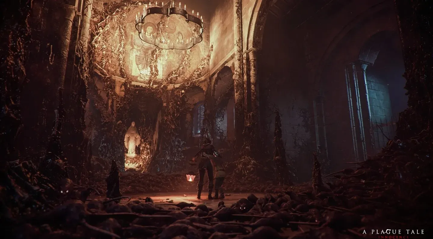 Действие в A Plague Tale: Innocence происходит с видом от третьего лица. В ходе игры игроки управляют только Амицией, а ее младшим братом управляет искусственный интеллект. Мальчик часто помогает сестре - его небольшой рост позволяет ему добираться до труднодоступных мест. Это пригодится при решении экологических загадок. Дети не могут защитить себя - Амиция использует только рогатку, с помощью которой можно отвлекать людей на своем пути и манипулировать окружением.