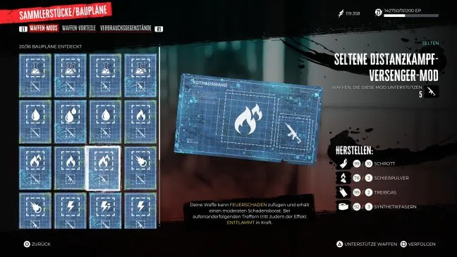 Выполнив основной квест No Head Zombie, вернитесь на виллу Эммы и найдите там верстак. Рядом с ним будет лежать чертеж, который улучшит ваше оружие дальнего боя.