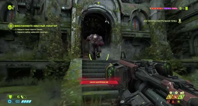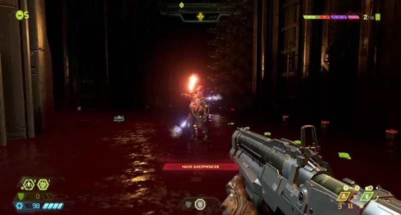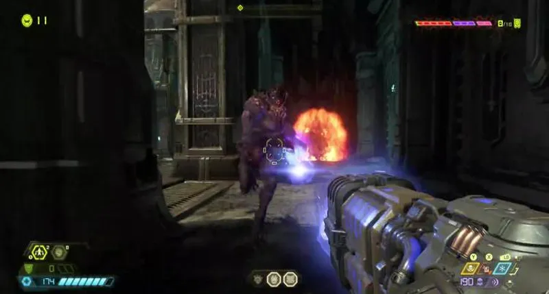 Выстрелив в щит из Плазменного ружья, можно перегрузить его и отключить на короткое время. Затем уничтожьте салазки, чтобы лишить демона возможности использовать ракеты и щит.