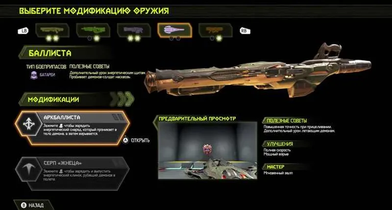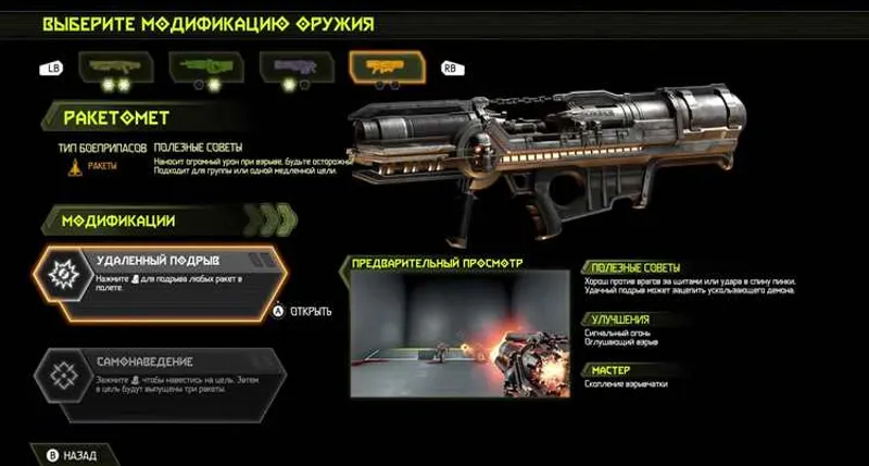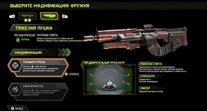 Какую модификацию оружия мне выбрать: вторая способность «Самонаведение» идеально подходит для сражений с большими группами противников. Далее стоит потратиться на улучшение «Быстрое наведение», которое ускоряет обнаружение демонов.