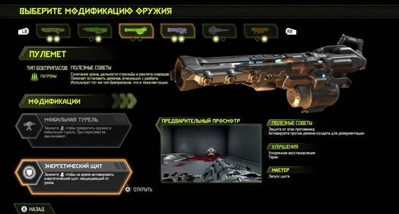 Какую модификацию оружия я должен выбрать: щит – великолепный выбор, но турель будет гораздо полезнее для боя. Улучшение позволит наносить дополнительный урон демонам постоянно.