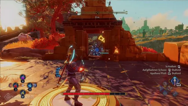 Испытание на время. Все предельно ясно, не так ли? В испытаниях на время вы всегда стартуете с небольшого круглого стартового поля. Непосредственно на старте стрелка на земле показывает, в каком направлении нужно спешить. Гонка начинается в тот момент, когда вы покидаете круглое стартовое поле. Затем вдалеке появится светящаяся колонна, до которой необходимо добраться до того, как остановится фоновая музыка. При этом временной лимит также зависит от выбранного уровня сложности. Вид забега на время зависит от окружающей обстановки. Иногда достаточно просто быстро бежать, иногда приходится искать кратчайший путь с помощью зависания, а иногда даже уместно использовать быстрое крепление. В качестве награды за завершение забега вы получите монеты Charon.