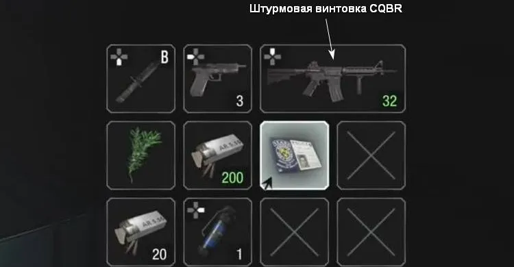 Автоматическая штурмовая винтовка CQBR – основное вооружение латиноамериканского наемника Карлоса. Ее не нужно искать, она находится в арсенале с момента как вы начинаете играть за этого персонажа. А выполнять миссии конкретно этим героем начнете с момента расставания с Джилл в метро и ее неудачной эвакуации.
