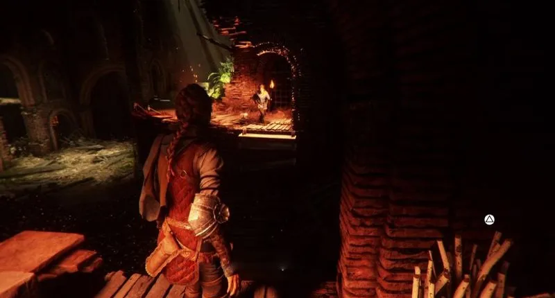 Как только вы вернете контроль над Амисией, возьмите факел со стены и бегите мимо всех кусков стены и арок, пока не достигнете чаши с потушенным огнем. Вы можете зажечь его факелом, чтобы открыть другое убежище, где вы будете в безопасности от крыс.