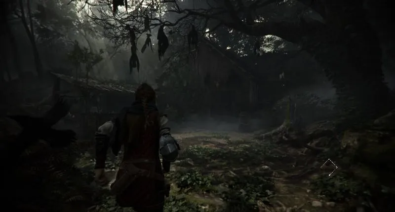 Справа вы увидите горящий камин и несколько туш животных. Погасите огонь селитрой и наблюдайте, как оставшиеся крысы поедают тушки. Затем вы можете пойти к запертой двери слева от мешка с селитрой или туда, откуда пришли трое мужчин. Перелезьте через небольшой кусок стены слева и идите по тропинке, пока не дойдете до узкого проема, через него войдите в сад травника.