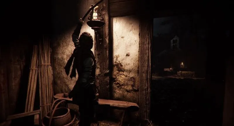 В здании вы увидите освещенное открытое окно в задней левой части, которое вы игнорируете. Вместо этого бегите направо к сундуку, который едва виден из-за плохого освещения. Затем развернитесь и направьтесь к следующей открытой двери, чтобы снова покинуть здание.