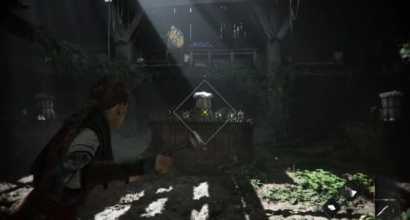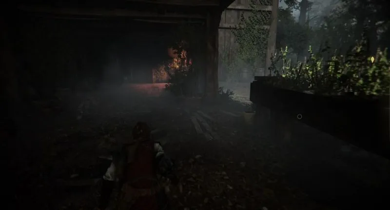 На вершине вы должны услышать крики Лукаса о помощи и увидеть широкое поле белых цветов. Проигнорируйте его и проберитесь под защитой травянистого поля к соседнему зданию. Там можно пройти мимо двух плоских столов и использовать их в качестве укрытия в случае сомнений. Наконец, вам нужно заглянуть за угол в дальнем конце деревянной стены и пройти мимо клумбы у дальнего левого края, чтобы добраться до еще одной тускло освещенной двери. Как обычно, следите за окружающими вас солдатами и, если сомневаетесь, затуманьте их глаза селитрой, чтобы незаметно подобраться к двери.