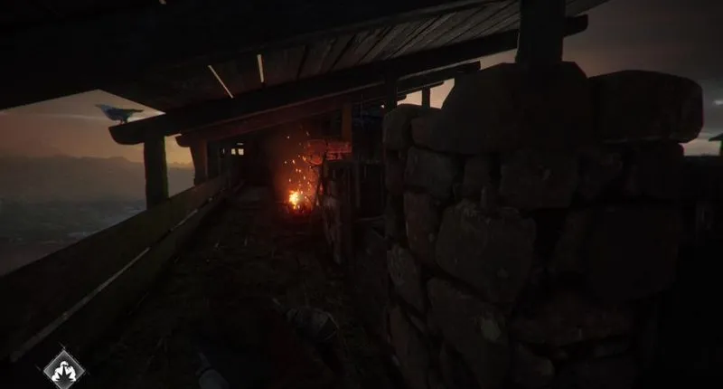 Следуйте по узкой тропинке, пока не сможете пролезть через небольшой квадратный люк слева от вас. Сразу же слева спуститесь по лестнице и обыщите сарай на предмет снаряжения. Для этого спуститесь по другой лестнице и пересеките сарай, пока не дойдете до тележки, свисающей с потолка. Там быстро сверните налево и посмотрите на ящик, в котором находится ваше оборудование. Вы также получите нож, который можно использовать, чтобы вскрыть верстак позади вас.