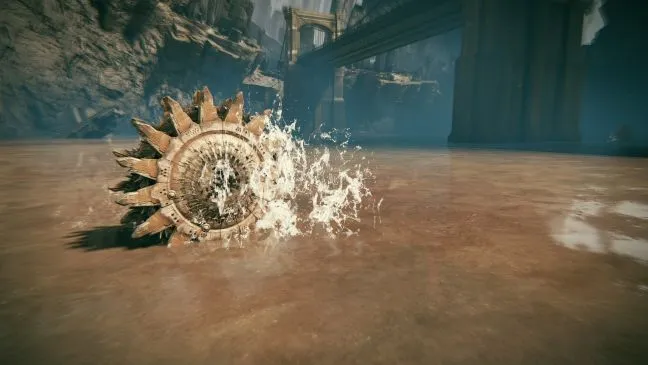 После борьбы с динамичным дуэтом вам придется пересечь затопленную часть города, чтобы добраться до следующего целевого ориентира. Вместо этого можно сначала обратить внимание на плавающие в воде реликвии. Это восемь древних орудийных систем, которые все еще радостно кружатся вокруг. Они похожи на большие циркулярные пилы, очень быстрые и очень опасные.