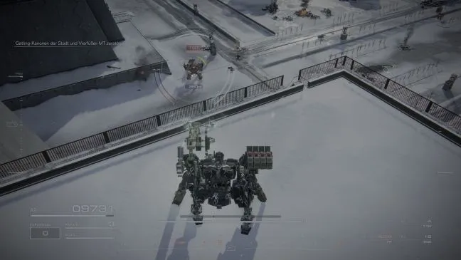 Таким образом, вы уничтожили целый ряд оборонительных сооружений противника, не получив даже царапины. Затем займитесь четвероногим МТ. К счастью, большой мех не является сложным противником, достаточно уклоняться от него влево или вправо при стрельбе через форсаж и следить за ракетным огнем. Одиночных врагов, находящихся поблизости, следует уничтожать быстро, чтобы они не могли помешать поединку.