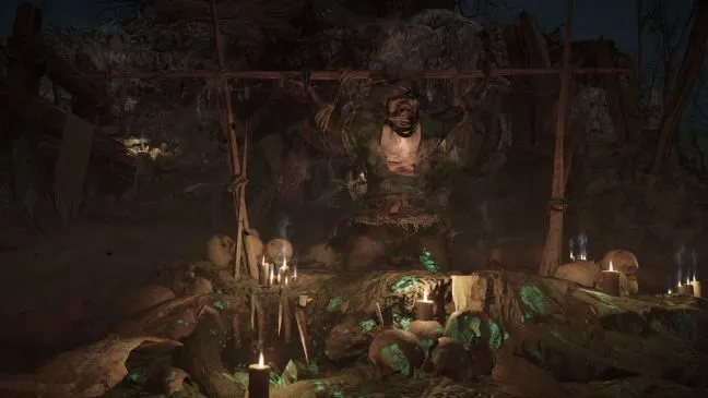 Гриб № 7: В южном конце леса, примыкающего к монастырю Венлокан, вы найдете место поклонения и этот гриб. Возможно, местоположение гриба неправильно отображено на вашей карте, но он там есть. Просто обойдите большое дерево, и вы найдете его. Окрасьте пламя всех алтарей, вокруг которых есть каменный круг, в синий цвет, а остальные оставьте красными.