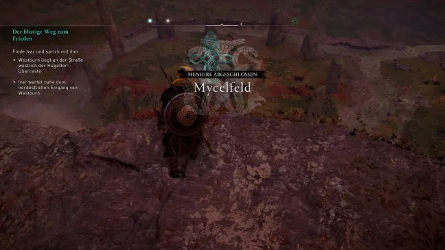 Поле мицелия: Если вы поедете на северо-запад страны во время выполнения квеста "Кровавый путь к миру", то наверняка проедете мимо этого менгира. Теперь снова осветите части знака зрением Одина, а затем заберитесь на скалу на севере. Оттуда посмотрите вниз и подгоните отдельные части так, чтобы они образовали знак, который вы видите на рисунке ниже.
