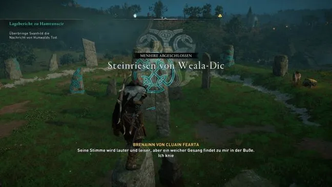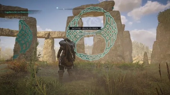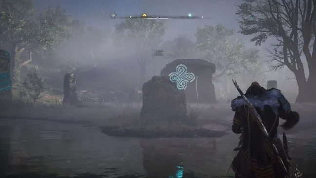 Сэйхен: Этот менгир можно найти далеко на севере Восточной Энглы, к юго-востоку от небольшого острова, где Эйвор тренируется с Освальдом во время выполнения квеста "Кингмейкер". Прочитайте послание на небольшом камне, а затем попытайтесь представить себе искомый символ. Встаньте к западу от круга, а затем посмотрите в центр так, чтобы отражение в воде дополнило знак.