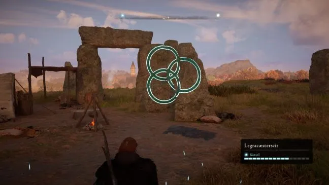 Игра "Кольцо дьявола": Далеко на востоке от земель Глоукастерскира, прямо на реке Темезе, лежит небольшой остров, и именно на этом острове находится загадка менгира. Порядок действий должен быть уже понятен: найдите камень с посланием, попросите показать вам символ, а затем сделайте так, чтобы части символа были видны с помощью зрения Одина. Теперь бегите на юг, садитесь в правую лодку и проплывите на ней несколько метров на запад, чтобы символ на маленьком камне стал одним целым с символом на каменной конструкции в центре.