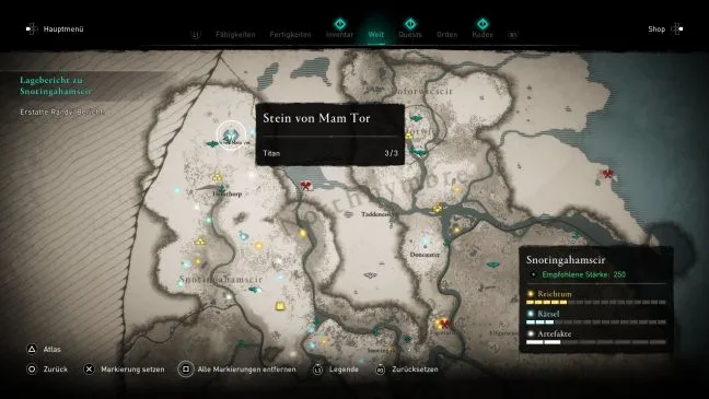 Камень Мам-Тор: Этот алтарь находится далеко на севере региона Снотингахамскир, к востоку от точки зрения Дремлющего Йетуна. Для подношения вам потребуется 3x титана - редкого материала, который можно найти в мире. Если у вас нет достаточного количества титана, вы можете купить его у торговца по своему выбору и вернуться в любое время, чтобы сделать подношение и получить благословение.