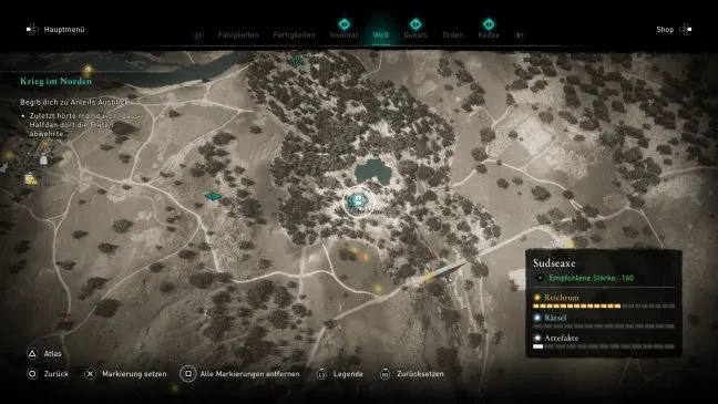 Загадочная скрижаль - котел: Это сокровище можно найти в Sudseaxe, далеко на востоке страны. Отправляйтесь в шахту Сантлаш к западу от местной смотровой площадки и войдите в южный туннель. Разрушьте стену в конце туннеля, чтобы попасть в соседнюю область. Пройдите небольшую полосу препятствий, поджидающую вас в пещерах, и вы попадете в зону, где находится загадка. Прыгните в воду и следуйте по затопленной шахте до панели.