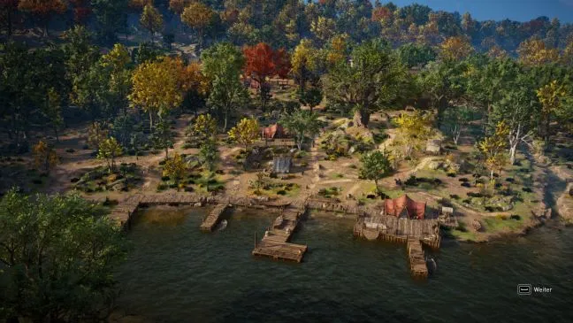 Чтобы избежать обнаружения, подойдите к лагерю, пригнувшись в камышах, и с помощью прицела Одина и ворона отметьте позиции вражеских войск. Вы можете прикрепиться к стене слева, чтобы пробраться в лагерь незамеченным. Можно прикрепиться к стене и подкрасться к цепному замку. Расстреляйте или разбейте два взрывателя, и путь для баркаса снова будет свободен.