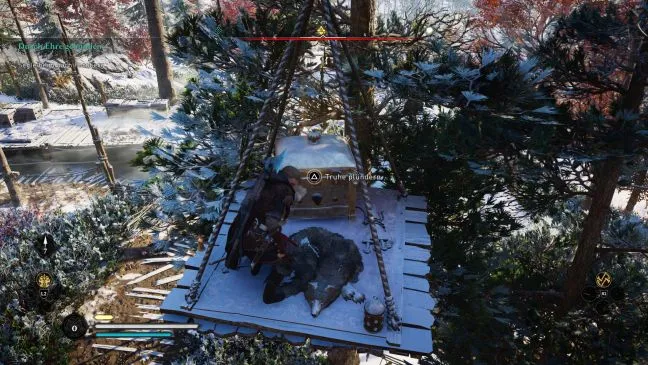 Угольный бар № 9: Этот бар можно найти на самом северо-востоке Рыгяфилки, внутри вражеского поста Кьётвис Весте. Эта территория хорошо охраняется, поэтому следует быть готовым к более длительному бою и, если необходимо, пополнить запасы перед визитом туда. С помощью Odinsight вы сможете обнаружить искомый сундук в запертой хижине. Чтобы попасть внутрь, нужно расстрелять крышку из веток спереди или сзади и забраться внутрь.