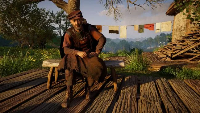 Теперь взаимодействуйте с белыми розами у тюков сена, одеждой на вешалке и скамейкой перед мужчиной. Вы можете выделить эти объекты с помощью видения Одина. Если вы дослушаете рассказ мужчины до конца и не дадите ему уснуть, то у вас появится шанс принять кольцо умершей матери в качестве розы, которую можно продать торговцу. Вы можете отказаться, но в любом случае событие завершится.