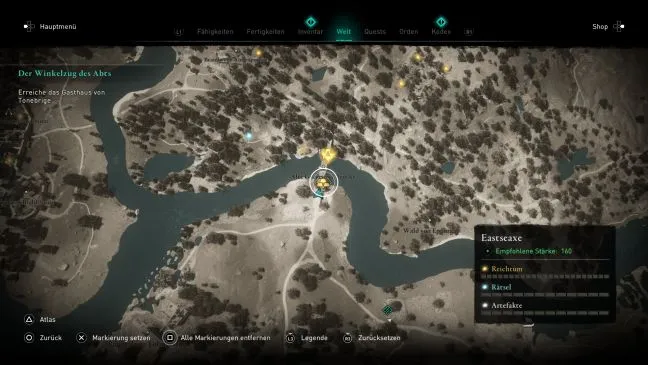Дремлющий терн (уровень 2): На юго-востоке найдите твердыню Дофраса - место, которое Эйвор должен посетить в ходе серии квестов, чтобы забрать письмо от посланника. Используйте Зрение Одина для поиска Книги знаний. К сожалению, дом, в котором находится книга, заперт, но, к счастью, ключ находится недалеко. Поднимитесь на соседнюю башню, и вы найдете его. И снова вам поможет зрение Одина.