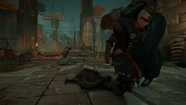 Поговорив с женой олдермена, вы продолжаете путь на юго-запад, в леса, где, по слухам, охотится Бирстан. Поскольку город и дороги все еще небезопасны, рекомендуется не снимать капюшон с головы, иначе в пути то и дело могут возникать драки. Недалеко от того места, где вы хотели встретиться с олдерменом, вы найдете кровавый лагерь. Используйте прицел Одина, чтобы найти все предметы, с которыми может взаимодействовать Эйвор.