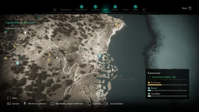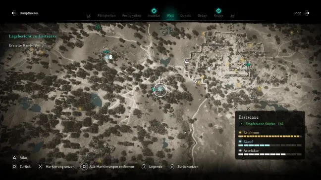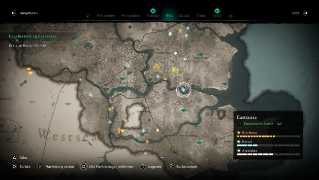 Кабан с золотым носом: на юго-западе страны, к западу от старого моста Грейвсенд, Эйвор встречает хозяина кабана. Следуйте за ним и Рюффелинхеном к фантастической находке носков, а затем исследуйте это место, чтобы свинья снова начала двигаться. Держитесь рядом с Рюффелинхеном и всегда откапывайте то, что находит свинья. Если вам трудно найти место, используйте прицел Одина. Защищайте его от бандитов, и вы не успеете оглянуться, как это событие закончится.