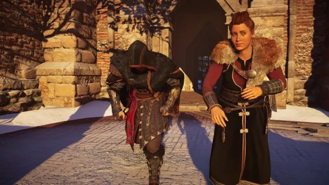 Войдите в дом и снова используйте прицел Одина, чтобы отметить все объекты, с которыми может взаимодействовать Эйвор. Так вы узнаете, что произошло в доме. Для этого нужно выйти из дома и пойти по следам крови и трупов на улицу. Найдя Люфвину, поговорите с ней и выполните задание. Затем следуйте за ней по городу, пока не доберетесь до Хьёра.