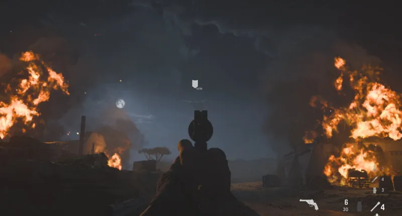 Вы можете использовать уже разрушенные автомобили в качестве укрытия и стрелять под ними лежа, но следует избегать неповрежденных автомобилей, так как они могут быть взорваны. Уничтожайте скопления врагов с помощью гамма-гранат, пулеметчиков и отдельных немцев из укрытия меткими выстрелами, когда враг сосредоточен на одном из ваших товарищей.