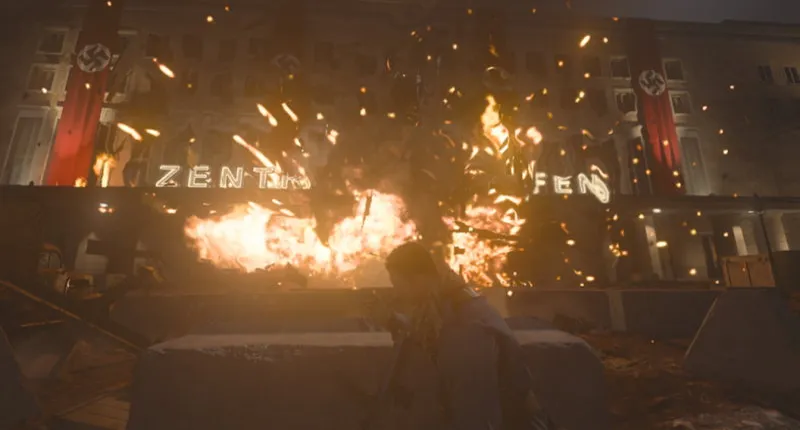 Теперь продолжите в роли Лукаса, и ваша задача – уничтожить три танка. Для этого медленно передвигайтесь по площади и оставайтесь в укрытии, чтобы избежать вражеского огня. Разбирайтесь только с теми нацистами, которые эффективно стоят на вашем пути, а в остальном сосредоточьтесь на том, чтобы добраться до танков, поскольку новые вражеские войска будут появляться в любом случае, пока вы не разберетесь с этими целями.