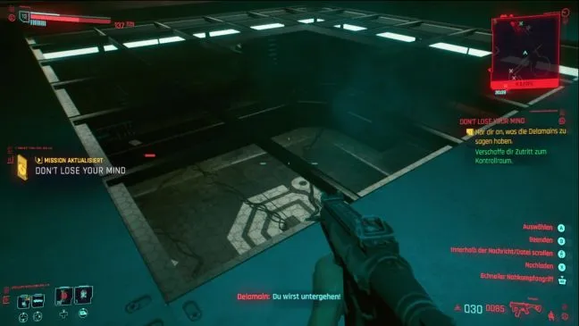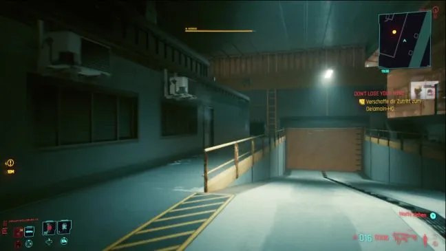 В гараже происходит много интересного: по земле снуют несколько такси Delamain, а в воздухе проворно крутится беспилотник. Он настолько быстр, что прицелиться в него практически невозможно. Поэтому как можно быстрее проскочите в дверь, спуститесь по лестнице и, в идеале, промчитесь мимо такси как можно дальше влево. Добежав до заднего левого угла, вы сможете вернуться наверх благодаря лестнице и выбраться через дверь. За дверью Вас также поджидают несколько дронов, но их можно легко перестрелять.