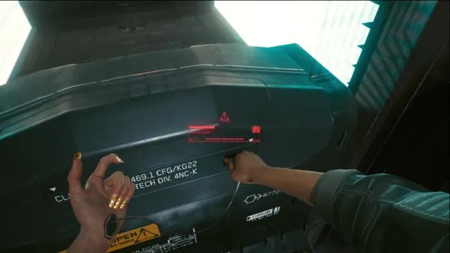 Вы находитесь на другой стороне большого цеха и стоите прямо перед одним из такси Delamain. Вы можете отодвинуть его, нажав на кнопку, в результате чего откроется еще один люк. Однако, как было заявлено, открыть его можно только в том случае, если у вас либо конституция 5, либо технические навыки 5.