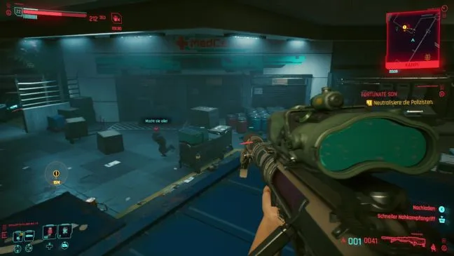 Предложите свою помощь и отправляйтесь к новому целевому маркеру, который приведет вас в центр Уотсона или в северо-восточный угол Маленького Китая. Поговорите с контактным лицом и возьмите кейс с имплантатом - после этого вы, конечно же, попадете в ловушку.