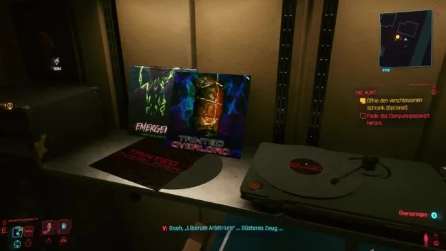 Внутри вы коротко поговорите с Ривером и должны обнаружить шкаф, в котором находится искомый Брейнданс. Для этого не обращайте внимания на все маленькие комнаты, а идите по коридору, пока не попадете в большую центральную комнату через открытую дверь. Сразу же найдите маленькую смежную комнату с большим детским рисунком на стене и просканируйте средний картотечный шкаф справа от стены. Вы автоматически вызовете Ривер и должны будете немедленно открыть шкаф.