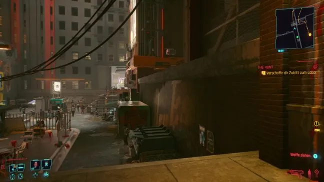 В него нужно как-то попасть, но спереди войти нельзя. Поэтому бегите снаружи к задней двери и откройте ее, если у вас есть необходимые технические навыки. Если нет, то пробегите мимо двери и спуститесь по лестнице. Не обращая внимания на набитый мусорный контейнер, заберитесь на ящик с граффити за ним. Оттуда нужно забраться на крышу справа и спрыгнуть на автостоянку, где по лестнице можно добраться до окна. Достаточно открыть его, и вы сможете забраться в лабораторию без каких-либо навыков.