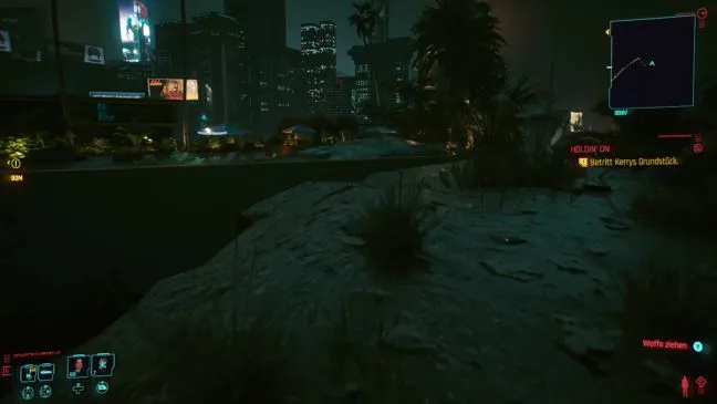 Ваша первая цель в этой миссии - место встречи у вывески North Oak: Джонни хочет снова занять Ваше тело и пообщаться со своим старым другом Керри. Для этого сначала нужно попасть в его владения, что не так-то просто. Широкие входные ворота заперты, а на звонок Керри не реагирует. Вместо этого нужно идти вдоль стены направо до плоского камня. Вы знаете, как забраться на него и перелезть через стену.