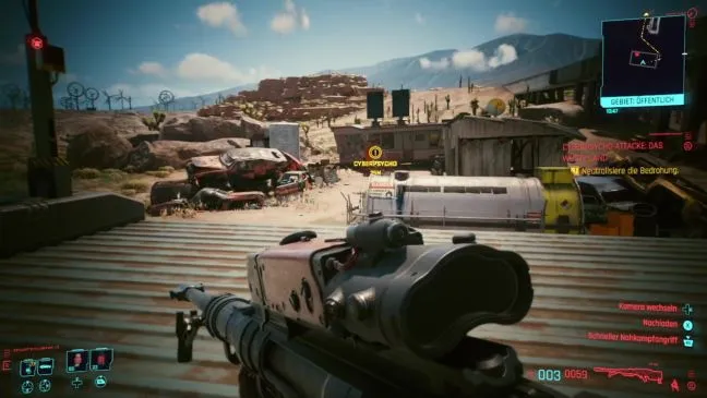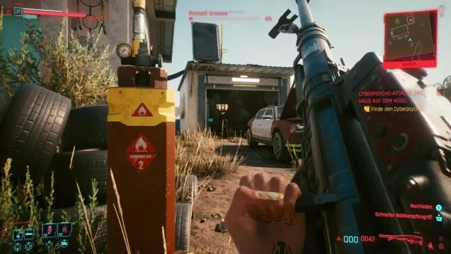 Киберпсихолог Рассел Грин живет вдали от города, к югу от Скалистого хребта, в одинокой хижине. Территория, в основном огороженная забором, охраняется несколькими дронами и двумя пушками. Последние, однако, активируются только после того, как вы впервые войдете в зону. Поэтому следует поступить именно так: немедленно покинуть ее и с безопасного расстояния разобраться со всеми дронами и пушками.