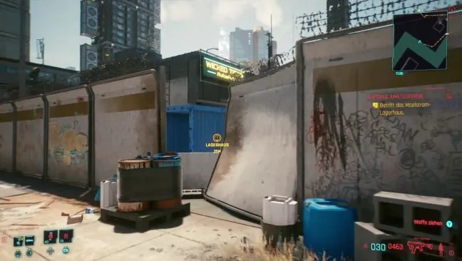 Вы ищете базу данных и должны найти склад Maelstrom. Не обращайте внимания на главный вход с северо-западной стороны и вместо этого ищите разрушенную стену с северо-восточной стороны, через которую можно проникнуть внутрь. Вам также следует пересечь открытый синий контейнер, чтобы защититься от расставленных охранников.