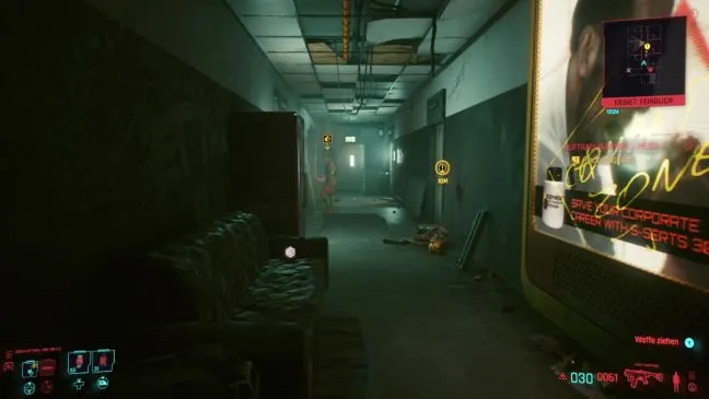 Вы ищете женщину по имени BugBear, которая находится в здании в центре Japantown. Войдя в здание, вы можете подниматься по лестнице по одному этажу. Вы неизбежно наткнетесь на широкий коридор, охраняемый мужчиной. Если взломать автомат рядом с ним на расстоянии, то можно отвлечь его и задушить.
