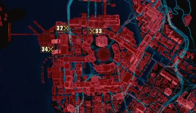 Если подойти к целевой зоне с востока, то слева от нее можно пройти по вытянутому пешеходному мосту и прыгнуть в воду. Перед вами должна появиться широкая платформа с несколькими светящимися плакатами. Плывите влево, и вы автоматически наткнетесь на лестницу сбоку, по которой можно забраться на платформу.