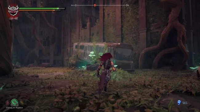 Перед альковом с демоном вы можете завладеть фрагментом алмазного шпата, который лежит у белого кривого автобуса. Прямо рядом с ним вы найдете Фрагмент гнева, а в северо-восточном углу области вы наткнетесь на разрушаемый барьер и сотрете в пыль большую глыбу лурчера, лежащую за ним.