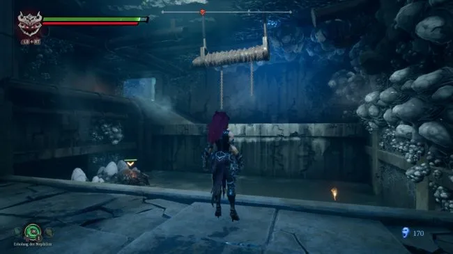 Над бассейном висит труба, благодаря которой с помощью колючек можно перепрыгнуть на узкую платформу у края бассейна. Это приведет вас в большую комнату, где вы уничтожите несколько ящиков слева от вас и получите фрагмент гнева.