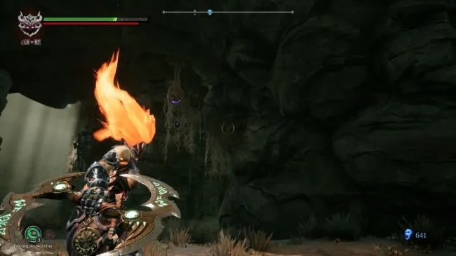 На обратном пути вы наверняка заметите закрытые ворота, за которыми, судя по всему, находится человек, взывающий о помощи. К сожалению, открыть ворота с этой стороны невозможно. Однако если вы подойдете к трубе, которую ранее освободили от паутины, перебежите на земляную платформу и обернетесь, то увидите по диагонали слева небольшой, едва заметный проход, который также зарос паутиной. Снова используйте комбинацию оружия погашения и способности пламени, чтобы сжечь их.