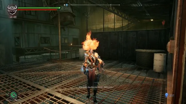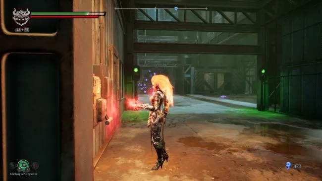 Вернитесь в здание мимо канализационного отстойника и прихожей, где из стены выползают жуки. Прямо над ним находится платформа, на которую можно забраться благодаря способности "Пламя" и на которой лежит большая куча люрчеров. После этого нужно перепрыгнуть на контейнеры на юге, и теперь у вас есть две лестницы на выбор, обе из которых приведут вас к цели с разных сторон: