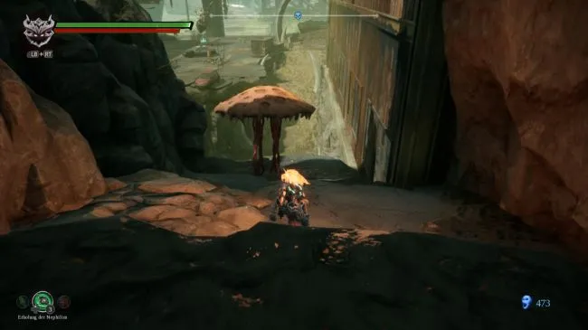 2) Лестница слева приведет Вас на платформу. Сразу же обратите внимание на трубу, свисающую с потолка над Вами, которая покрыта паутиной. Вы можете сжечь ее благодаря комбинации оружия погашения и способности "Пламя" и перебраться на земляную платформу - но пока мы не рекомендуем этого делать, так как вы еще можете исследовать несколько других объектов.