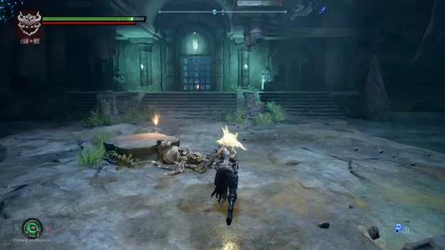 Как только вы снова почувствуете под ногами сухую землю, нужно повернуться и, используя свою силу, взлететь вверх по хрустальной стене. Вы приземлитесь прямо перед входом в подземную камеру, где обитает Проклятый тамплиер.