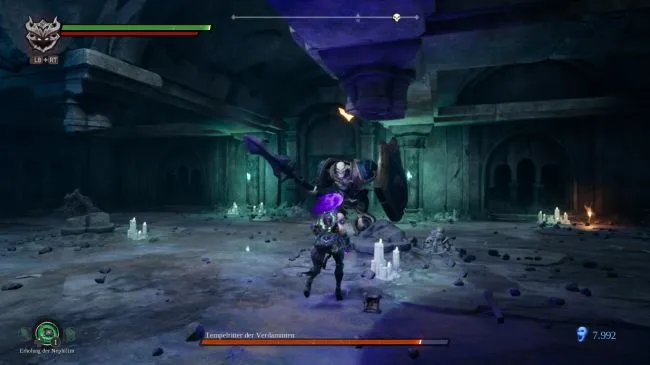 Рыцарь - это большой скелет, который атакует вас мощным мечом и массивным щитом. Во время боя он загорается, и тогда его атаки наносят вам еще больший урон.