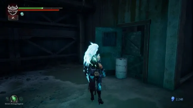 Когда оба врага будут убиты, вы сможете разграбить комнату и насладиться усилением удачи, лежащим перед решеткой. В северо-восточном углу вы также найдете большой фрагмент исцеления, в юго-восточном - фиолетовый узелок, включающий в себя сосуд лурчера среднего размера, а в юго-западном - кусок алмазного шпата. В последнем углу Вы услышите крик человека о помощи: Добраться до него можно, пробежав обратно по лестнице на краю секретной комнаты к синей шахте и разбив деревянные ящики на дальнем западе.