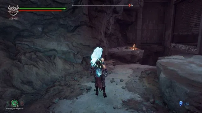 Поэтому следуйте по тропинке на юг, которая приведет вас дальше вглубь. Как только вы спуститесь на несколько ступенек и окажетесь перед узкой шахтой, развернитесь и, используя способность к пламени, подпрыгните к насекомым. Они охраняют средних размеров корабль Лурчера.