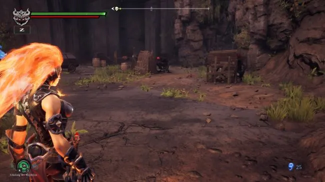 Для выполнения следующего смертного греха вам предстоит вновь исследовать знакомую местность с помощью своих новых способностей. Недалеко от перехода через змеиную нору вверх поднимается столб ветра, благодаря которому вы можете плыть с помощью своей штормовой способности в направлении северо-запада к платформе. Там вам сразу же придется насторожиться: Вы наткнетесь на два барьера, за каждым из которых прячется демон с красными глазами. В одиночку он не представляет особой проблемы, но в паре эти существа очень неприятны.