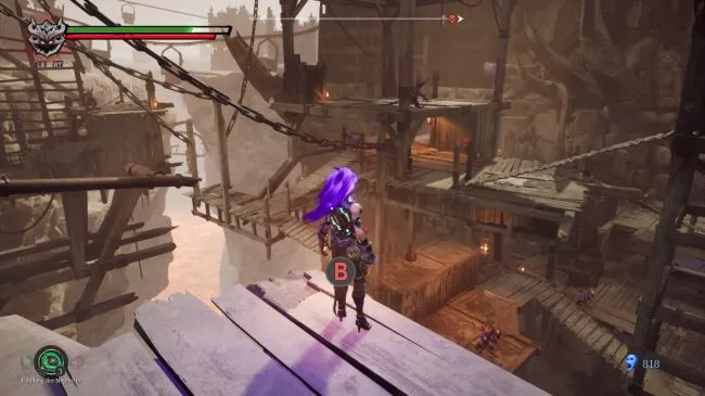 На перекрестке к югу от крана, у которого вы повернули на деревянных платформах, есть два пути. Тот, что слева, заканчивается тупиком, а тот, что справа, ведет к небольшому зданию с демоном.